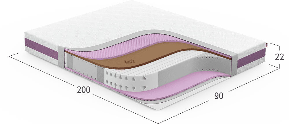 В этом матрасе для основы используется пенный материал PROFILEFOAM. Качество поддержки спины беспружинных матрасов зависит от эластичности пен. Чем выше эластичность, тем лучше поддержка спины.