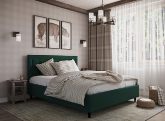 Стежка помещена в центр изголовья и обрамлена, словно картина. Объемные царги становятся гармоничным дополнением образа и завершают цельную фигуру кровати.